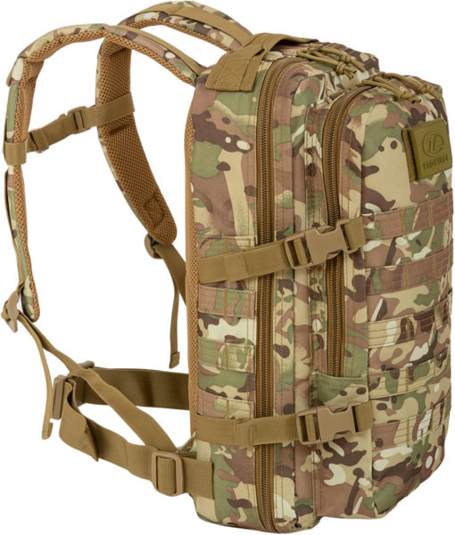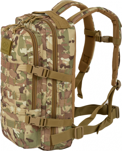 Highlander Recon Backpack 20L HMTC (TT164-HC) - компактний і легкий рюкзак для одноденних виходів. Модель виготовлена із міцного водостійкого поліестеру 600D XTP, має систему кріплень Molle та два окремих відсіки на блискавках для зберігання спорядження в польових умовах. Вентильована спинка Airmesh, компресійні ремені та посилена ручка роблять цей рюкзак компактним та зручним для носіння. Регульовані лямки з м’якими підкладками та регульований поясний ремінь розподіляють навантаження, щоб забезпечити вам комфорт під час щоденного носіння. Все це гарантує, що даний рюкзак витримає тривалу експлуатацію.