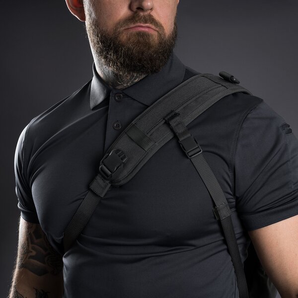 Плечова лямка, регульована по висоті, з м'якою пінополіуретановою підкладкою, обшита сітчастою тканиною.