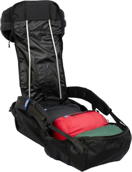 - Рюкзак закривається на рол-топ. У поєднанні з бічними стяжками це дає змогу регулювати об'єм рюкзака від 30 л до 65 л.