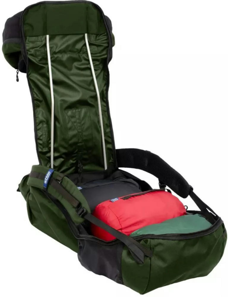 - Рюкзак закривається на рол-топ. У поєднанні з бічними стяжками це дає змогу регулювати об'єм рюкзака від 30 л до 65 л.