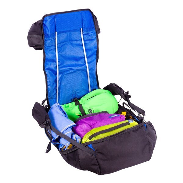 Рюкзак закривається на ролл-топ. В поєднанні з бічними стяжками це дозволяє регулювати об’єм рюкзака від 30л до 65л.