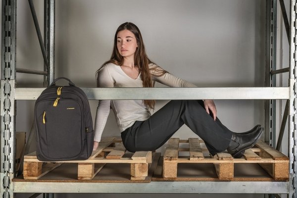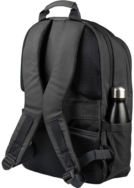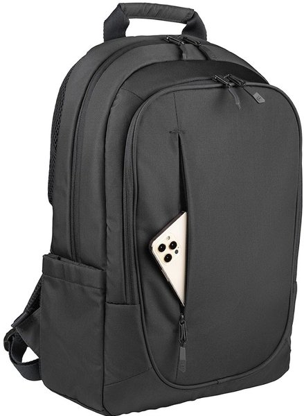 Рюкзак для ноутбука 15,6" та MacBook Pro 16" виготовлений зі 100% переробленої тканини з пляшок PET. Внутрішня частина з підкладкою та м'якою оббивкою має подвійну захисну кишеню для ноутбука та планшета. На передній стороні є передня кишеня на блискавці, а на задній стороні – плечові ремені, що регулюються, і ремінь для кріплення до візка. Збоку рюкзак має дві зручні кишені для парасольки та пляшки з водою. Захисна кишеня на спині.