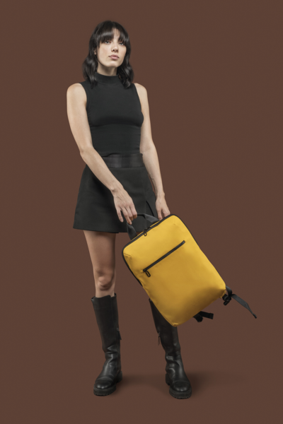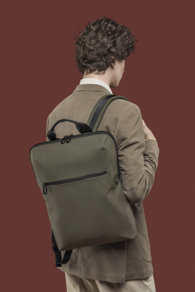 Рюкзак з прогумованого матеріалу з мінімалістичним спортивним дизайном підходить для 15,6-дюймових ноутбуків і 16-дюймових MacBook. Рюкзак Gommo має одне велике відділення, внутрішню кишеню для ноутбука та зовнішню кишеню для аксесуарів. Він також має дихаючу сітчасту спинку та зручний ремінь для транспортування.