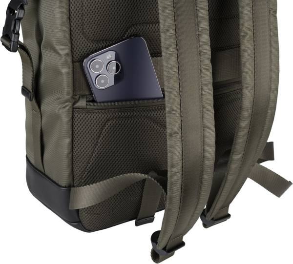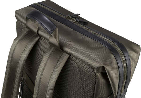 Діловий рюкзак з тканини, виготовленої з переробленого пластику, зі шкіряними вставками та внутрішнім відділенням з подвійною захисною кишенею для 15,6-дюймового ноутбука або 16-дюймового MacBook. Рюкзак Modo Premium має великий, зручний верхній отвір, який можна відкрити з обох боків, добре організовані кишені, ергономічну спинку та ремінь для транспортування на валізі. Кишеня для захисту розташована на спині.