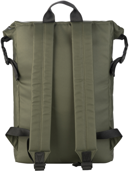 Рюкзак із застібкою roll-top для ноутбуків, виготовлений з переробленої тканини з водонепроникним покриттям. Рюкзак Rollo має велике одне відділення, внутрішню кишеню для ноутбука, зовнішню кишеню для аксесуарів і м'які регульовані плечові ремені, що робить його зручним і корисним як для роботи, так і для відпочинку.