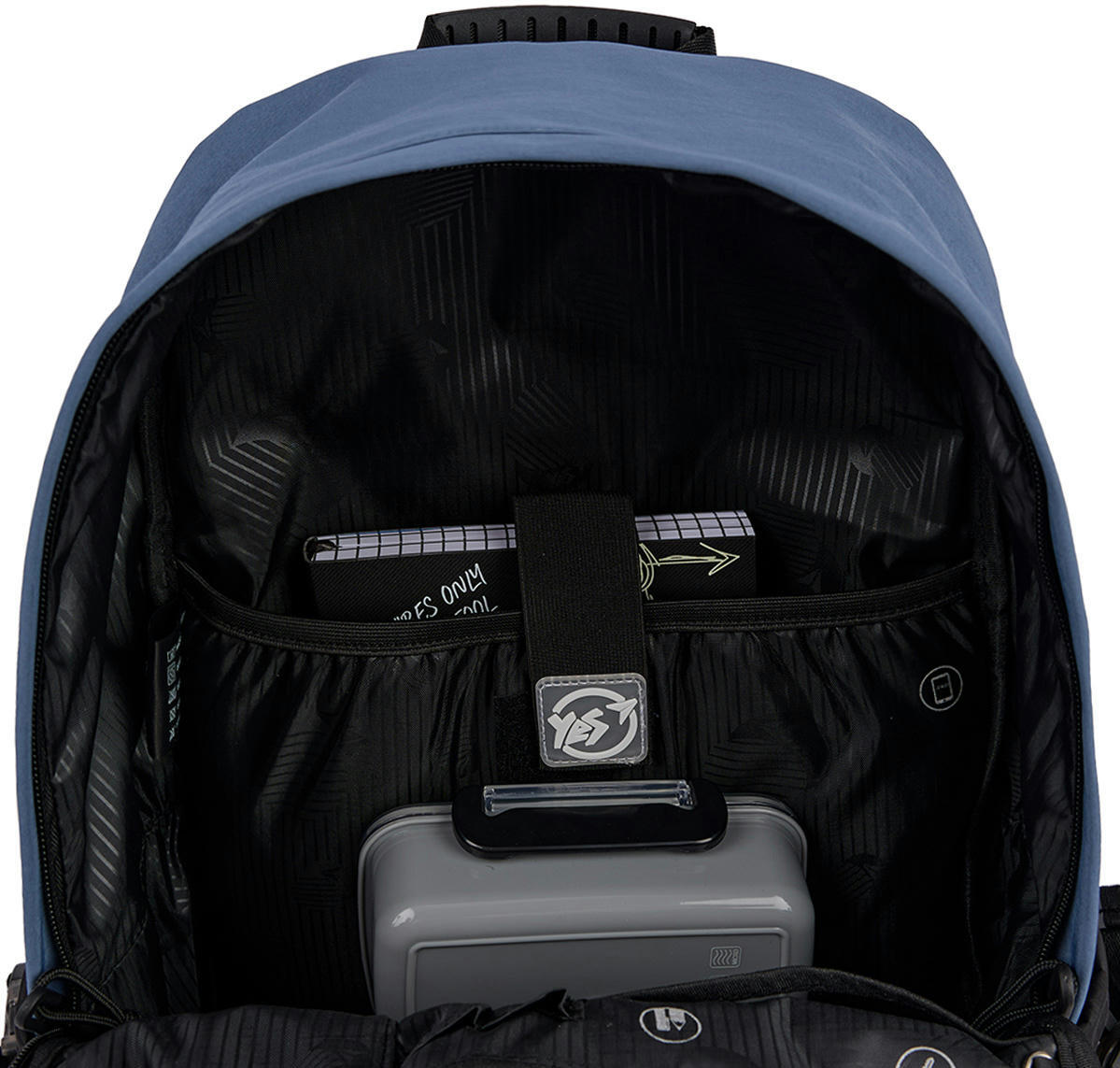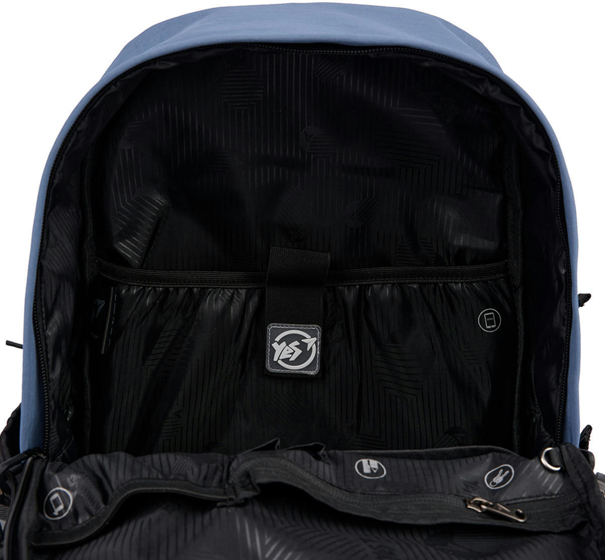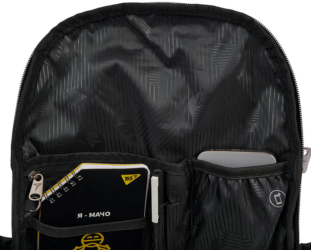 Рюкзак Yes Т-107 має одне просторе відділення, у якому зручно розмістити все необхідне для навчання або подорожі. Продуманий до дрібниць внутрішній органайзер включає окремі кишені для документів, канцелярського приладдя та інших важливих речей. Для мобільного телефону, планшета або ноутбука передбачені спеціальні кишені з м’якою флісовою підкладкою, які забезпечують додатковий захист.
