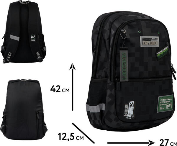 Всередині розміщено продуманий органайзер, який дозволяє впорядкувати канцелярію, телефон і гаджети. Це зручно для тих, хто цінує порядок і швидкий доступ до потрібних речей. Усі елементи фурнітури – від блискавок до пулерів – виготовлені з якісних матеріалів, що пройшли випробування на міцність. Рюкзак Yes T-113 Minecraft Boom із лаконічним піксельним дизайном стане ідеальним вибором для справжніх шанувальників популярної гри Майнкрафт. Простий, але стильний, він підкреслить індивідуальність свого власника та завжди буде актуальним у будь-яких умовах.