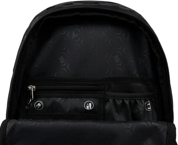 Модель має два містких відділення, які зручно розміщують усі необхідні речі. Додаткова кишеня спереду підійде для дрібниць, які мають бути під рукою, а бокові кишені ідеальні для пляшки з водою чи невеликих аксесуарів. Прихована кишеня на спинці дозволить безпечно зберігати найцінніше. Ущільнена спинка та дно гарантують збереження форми рюкзака, навіть при інтенсивному використанні, а зносостійка тканина з водовідштовхувальним просоченням захищає вміст від дощу чи бруду.