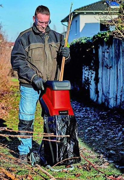 Подрібнювач садовий Einhell GC-KS 2540 є потужним та надійним інструментом для швидкого подрібнення гілок дерев, кущів та іншого садового сміття. Різальним механізмом подрібнювача є два ножі із загартованої сталі. Велика воронка забезпечує зручне завантаження гілок. Воронка, за потреби, може бути відкинута, для її фіксації є надійний замок. Двигун оснащений системою захисту від навантаження. Подрібнювач зручно переносити завдяки міцному шасі з великими колесами та практичною ручкою, вбудованою в корпус. Мішок для збирання мульчі підвішується на спеціальний гак. Також в комплект постачання входить штовхач для безпечного проштовхування гілок.