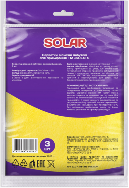 - Серветки віскозні Solar для прибирання 3 шт