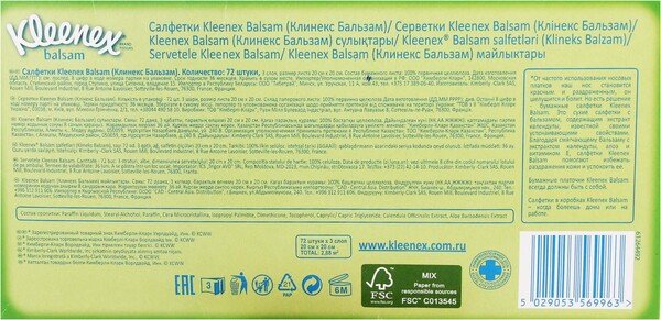 Серветки косметичні Kleenex Balsam 3 шари 72шт