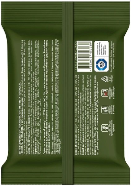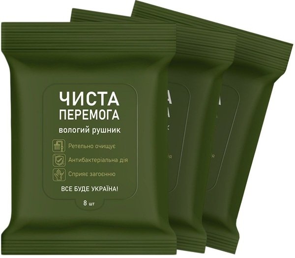 Схожі товари Антибактеріальні вологі серветки Чиста Перемога Мілітарі 8 шт