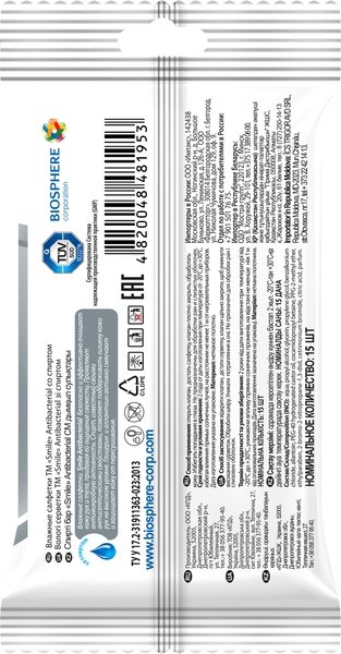 Вологі серветки Smile Antibacterial зі спиртом 15 шт