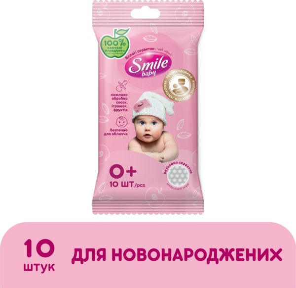 Схожі товари Серветки вологі Smile baby для немовлят 10шт