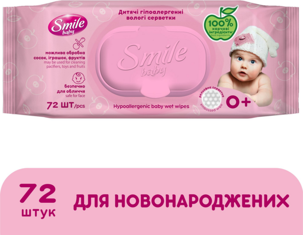 Схожі товари Серветки вологі Smile baby для немовлят 72шт
