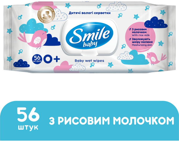 Серветки вологі Smile baby з рисовим молочком 56шт