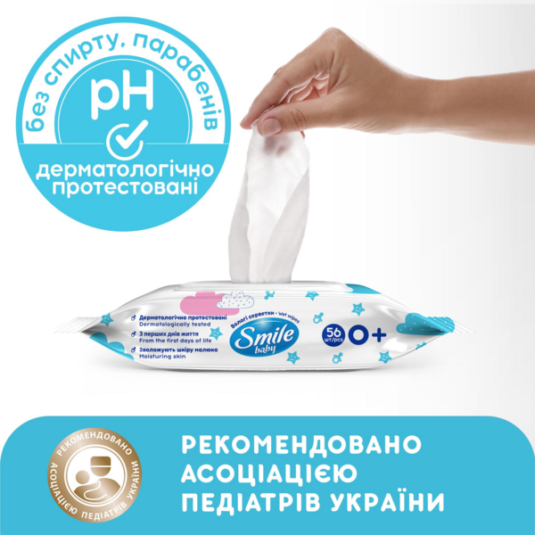 Схожі товари Серветки вологі Smile baby з рисовим молочком 56шт