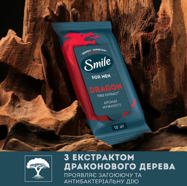 Вологі серветки Smile for men з екстрактом дерева дракона 10 шт