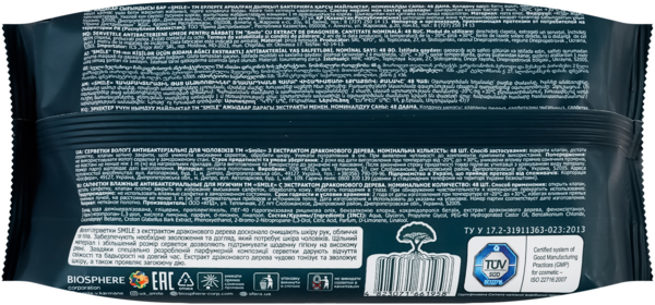 Вологі серветки Smile for men з екстрактом дерева дракона 48 шт