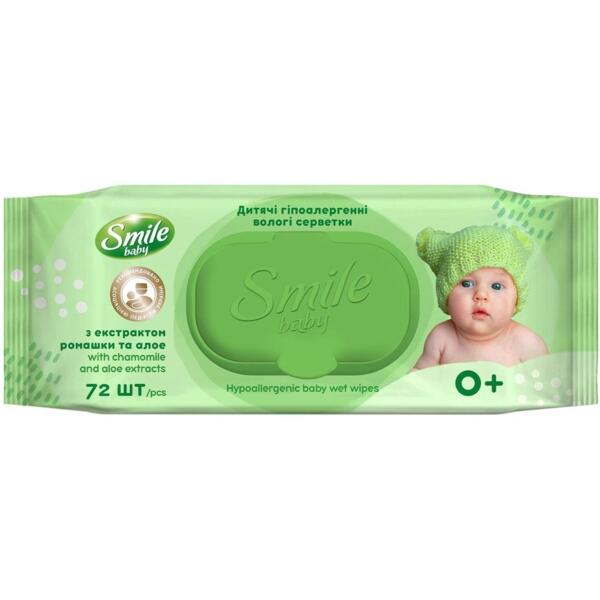 Вологі серветки Smile з екстрактом бавовни 72 шт