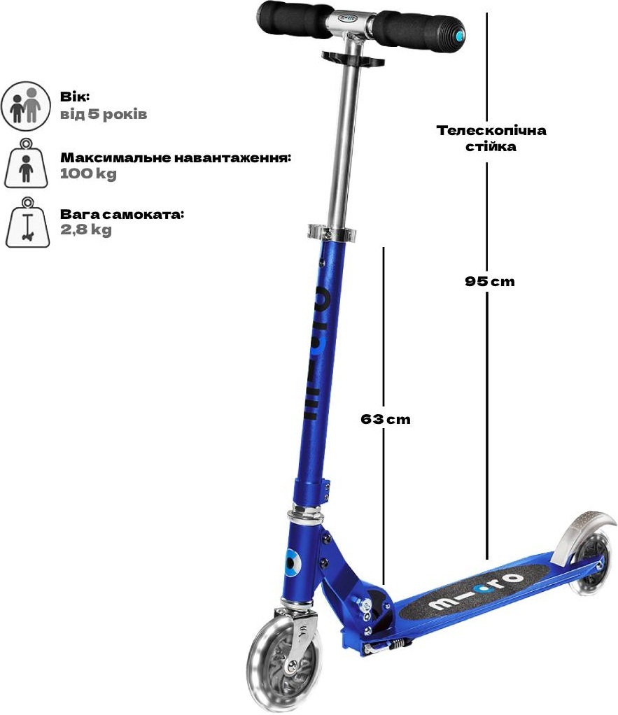 Самокат Micro серії Sprite LED - Сапфіровий синій (SA0231)
