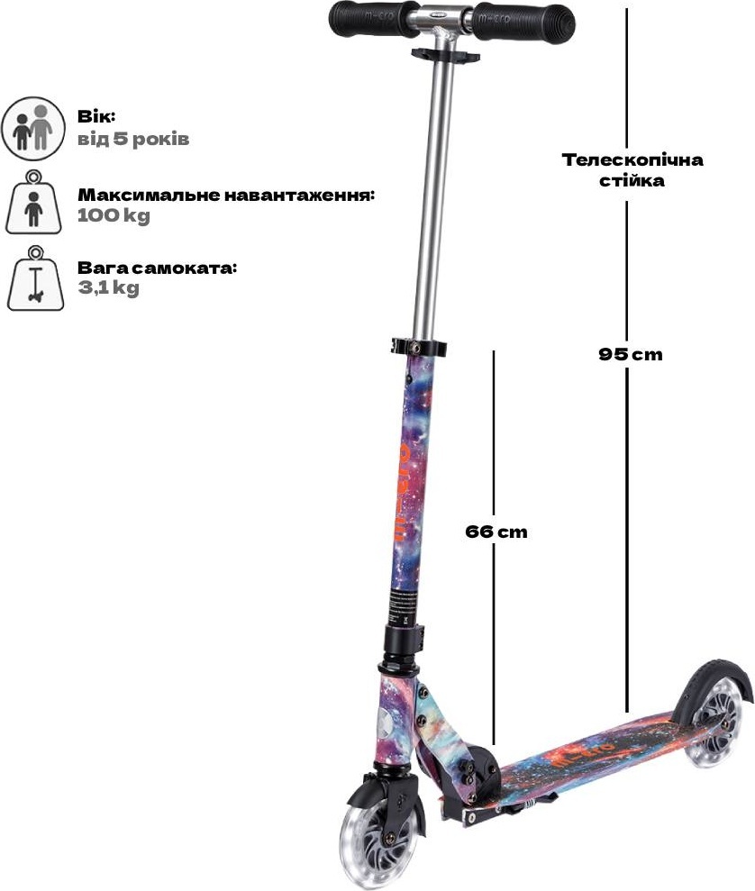 - Самокат Micro серии Sprite Glow LED Art Collection – Космос (SA0299)
