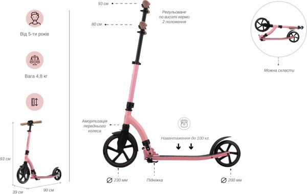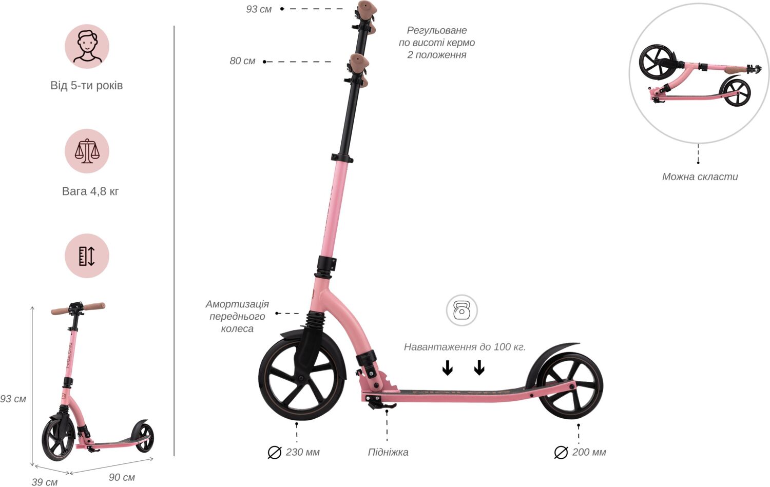 Самокат Miqilong Beagle рожевий (BEAGLE-200-PINK)
