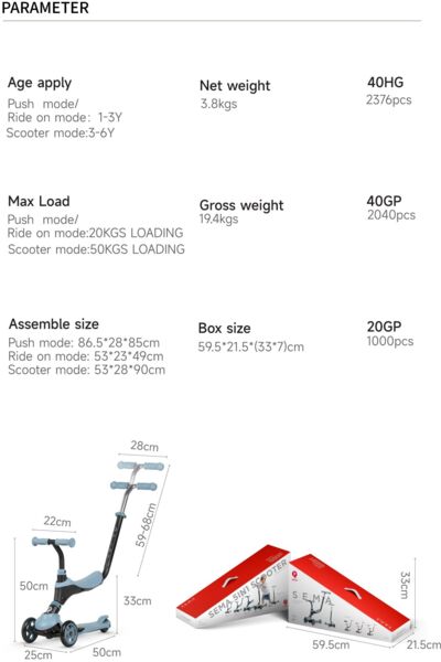 Самокат QPLAY Sema 5-в-1 триколісний рожевий (ST-004SemaPink)