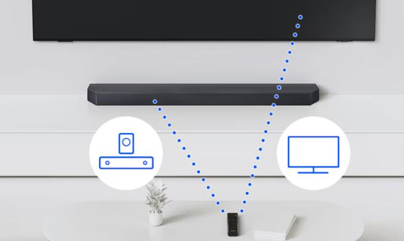 Ваш пульт від телевізора Samsung може керувати не лише телевізором. За його допомогою ви можете також налаштовувати основні функції саундбара, такі як живлення, гучність і звукові ефекти.