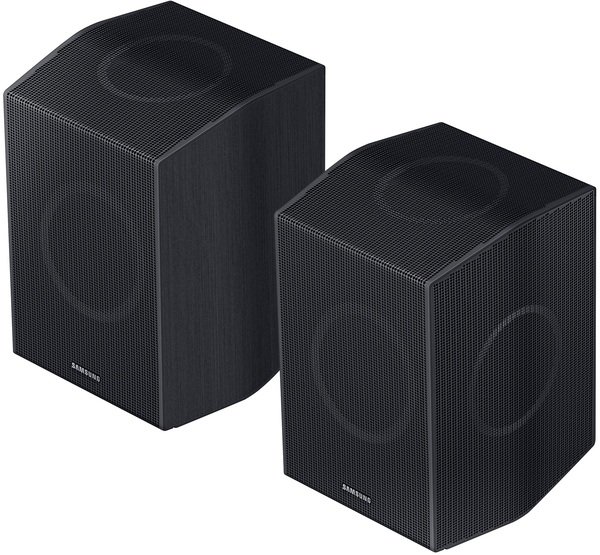 Задні динаміки, спрямовані вгору, в комплекті. Кінематографічний звук, що перехоплює подих, простягається над головою. З бездротовим під'єднанням тилових висхідних динаміків, включених до комплекту, звук проєктується з будь-якої точки кімнати і створює атмосферу театрального простору вдома.