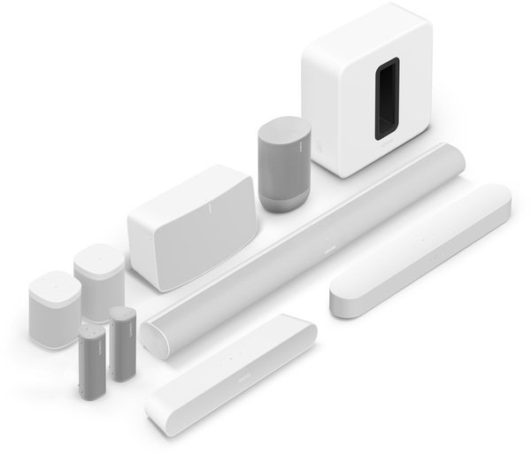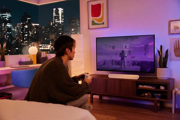 - Sonos Arc — у флагманській звуковій панелі Sonos використовуються 11 динаміків, у тому числі 2 спрямованих нагору, які забезпечують справжній звук Dolby Atmos — ідеальний варіант для великої кімнати або окремого кінотеатру