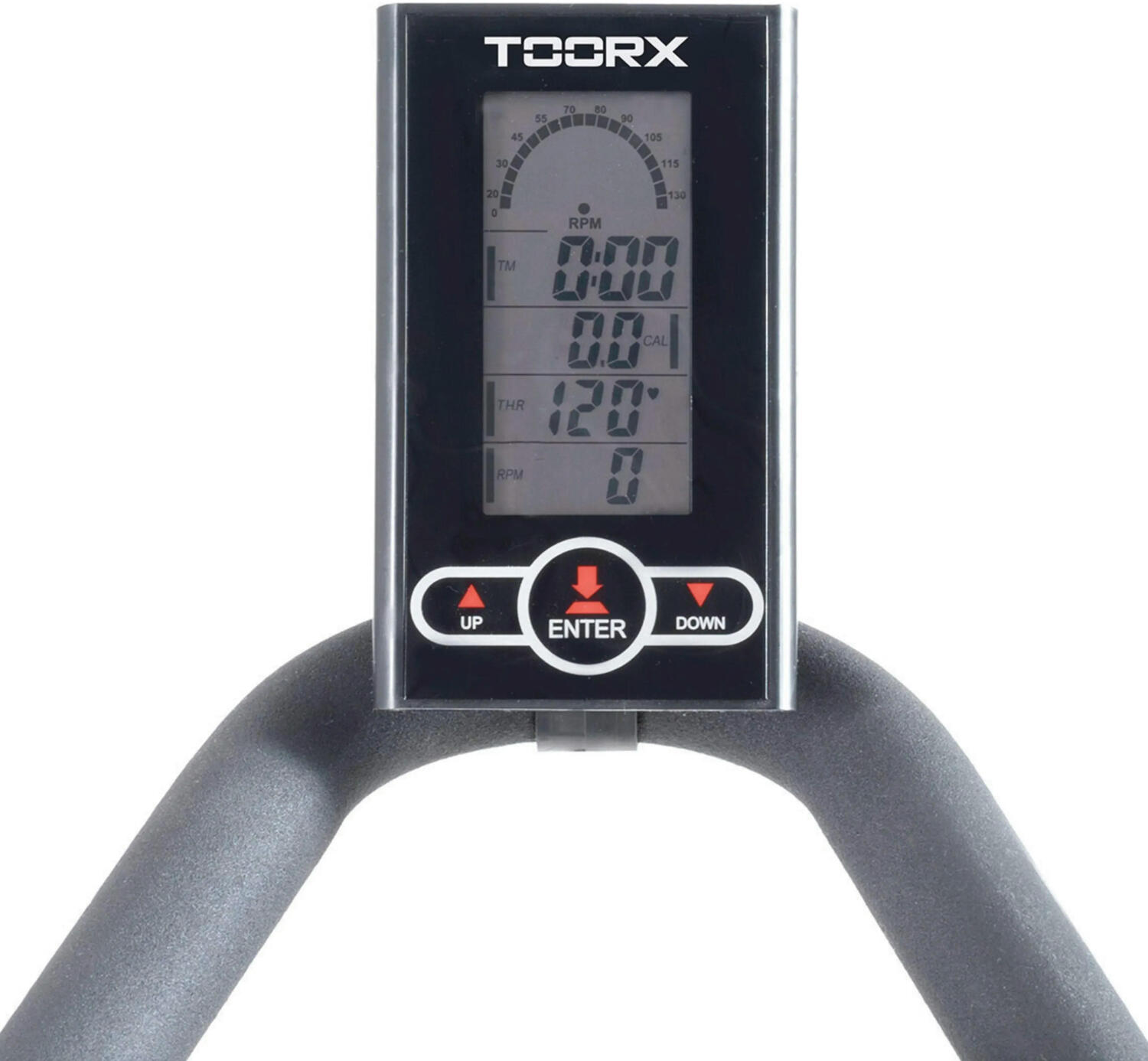 Сайкл-тренажер Toorx Indoor Cycle SRX 65EVO від італійського виробника Garlando S.p.A. призначений для інтенсивного кардіотренування в домашніх умовах. Тренажер має колодкову систему опору з ручним безступінчатим регулюванням навантаження. Важкий 22-кілограмовий маховик разом із ремінним приводом забезпечують безшумність роботи тренажера та достатнє навантаження навіть для підготовлених спортсменів. Тренажер розрахований на вагу до 125 кг і підійде для користувачів зростом до 2 м. Вбудований приймач для бездротового датчика вимірювання пульсу буде доречним під час тренування для контролю частоти серцевих скорочень. Спортивне сидіння регулюється по висоті та в горизонтальній площині, а кермо - по вертикалі, забезпечуючи індивідуальне налаштування. Транспортувальні ролики в передній частині тренажера дозволяють вільно переміщати його по кімнаті.
