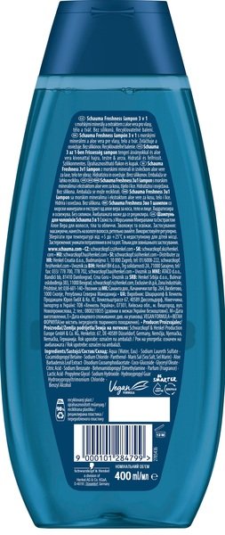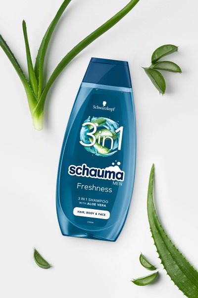- SCHAUMA Шампунь 400 для чоловіків 3 в 1 Морські мінерали та Алое вера