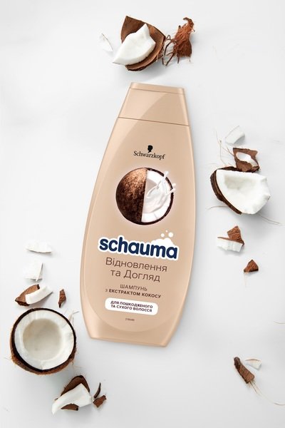 Спробуйте шампунь Schauma Відновлення та Догляд з екстрактом кокоса і комплексом мікроелементів для пошкодженого і сухого волосся.