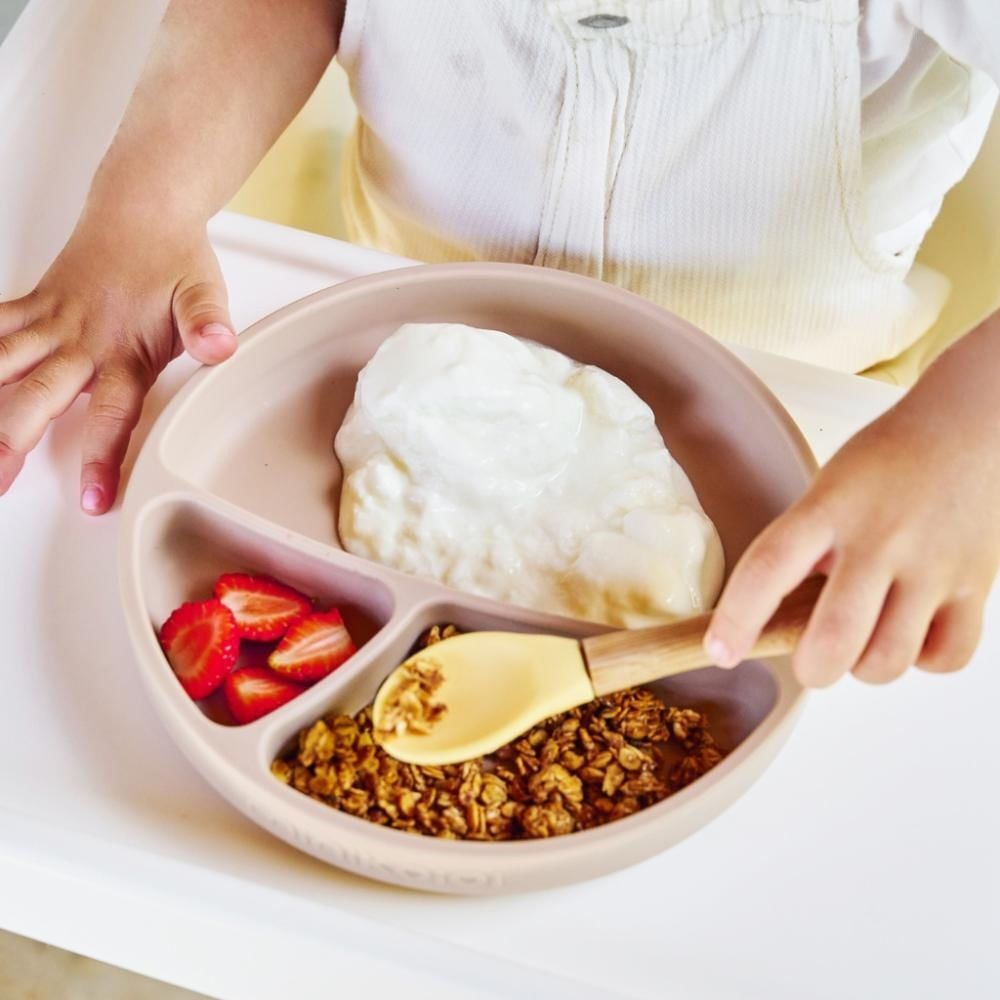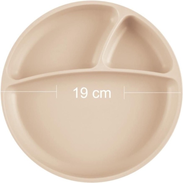 Виготовлено зі 100% харчового силікону. Це заохочує відлучення від грудей та підтримує самостійність. Допомагає у розвитку дрібної моторики, а також є здоровою альтернативою пластику. Підходить для духовки, мікрохвильової печі, аерофритюрниці, холодильника та морозильної камери за температури від -40°C до 200°C. Поверхня, до якої має прилипнути тарілка, мусить бути гладкою, сухою та чистою.