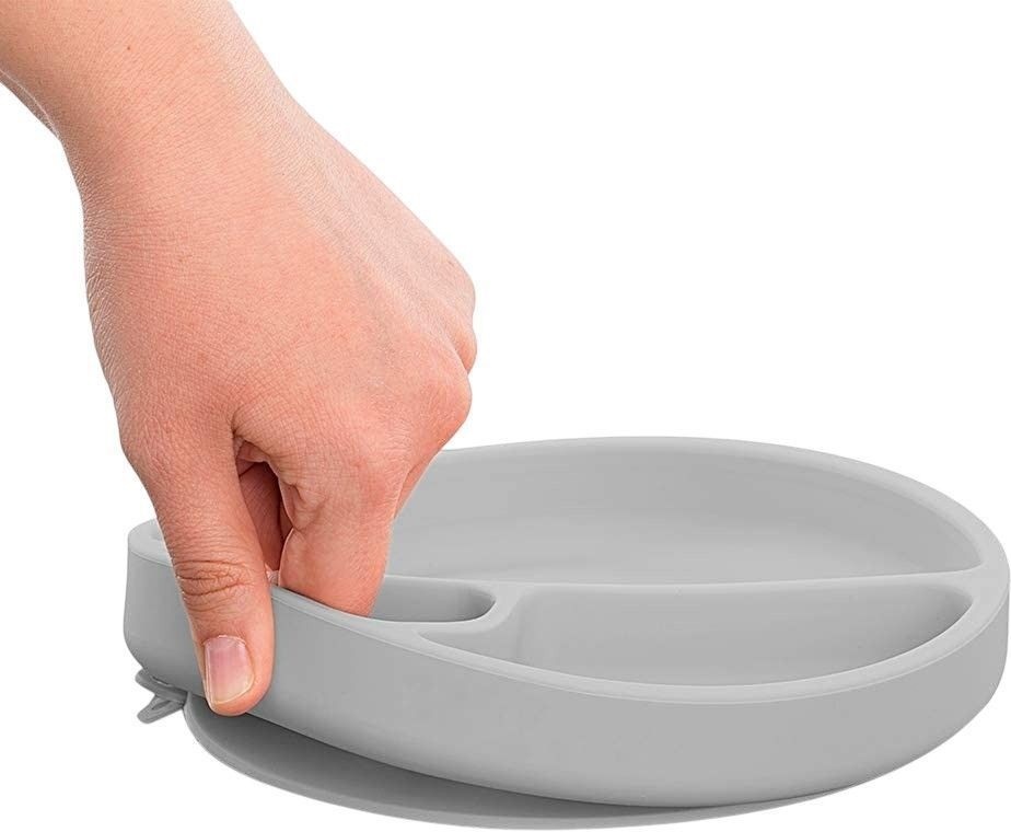 Виготовлено зі 100% харчового силікону. Це заохочує відлучення від грудей та підтримує самостійність. Допомагає у розвитку дрібної моторики, а також є здоровою альтернативою пластику. Підходить для духовки, мікрохвильової печі, аерофритюрниці, холодильника та морозильної камери за температури від -40°C до 200°C. Поверхня, до якої має прилипнути тарілка, мусить бути гладкою, сухою та чистою.