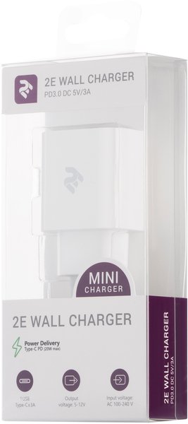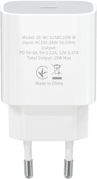 Мережевий ЗП 2Е USB-C Wall Charger 20W PD3.0 White (2E-WC1USBC20W-W)