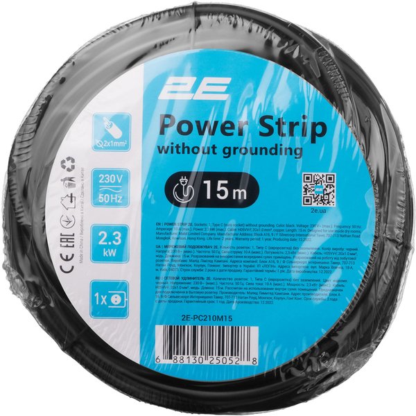 - Мережевий подовжувач 2E 1XCEE7/17, 2G*1.0мм, 15м, Black (2E-PC210M15)