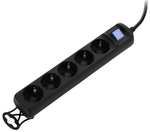 Мережевий подовжувач 2E з вимикачем на 5 розеток Типу F (євророзетка із заземленням), вилка Типу F (євровилка із заземленням).