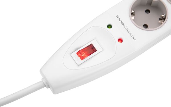 Оснащений автоматичним вимикачем, який при виникненні замикання або стрибка напруги автоматично від'єднає пристрої. Вимикач працює майже безшумно, тому при використанні не турбує сон ваших близьких. На фільтрі є два індикатори LED: індикатор заземлення та захищеності з'єднання. Пристрій має захист від дітей як захисних шторок. Розетки на фільтрі розташовані під кутом 45 градусів, тому вилки пристроїв не заважатимуть один одному. Виконаний з вогнетривкого PC-пластику, який витримує високі температури, запобігаючи займанню і, як наслідок, перешкоджає виникненню пожежі. Кабель у мережевому фільтрі з індивідуальною ізоляцією кожної жили, а саме H05VV-F, трьох житловий із перетином 1.5 мм. Матеріал провідника – 100% мідь. Такі характеристики забезпечують максимальне навантаження пристрою – 3680 Вт. Пристрій має кріплення на звороті, тому його можна закріпити горизонтально або вертикально на стіні.