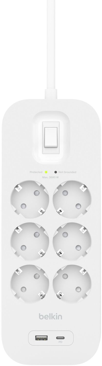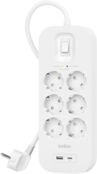 Мережевий фільтр Belkin 6хТип F, 3x1.5мм кв, 16А, USB-A/USB-C 18Вт, 2м (SRB002vf2M-V2)