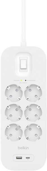 - Мережевий фільтр Belkin 6хТип F, 3x1.5мм кв, 16А, USB-A/USB-C 18Вт, 2м (SRB002vf2M-V2)