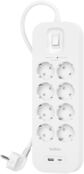 Мережевий фільтр Belkin 8хТип F, 3x1.5мм кв, 16А, USB-A/USB-C 18Вт, 2м (SRB003vf2M-V2)
