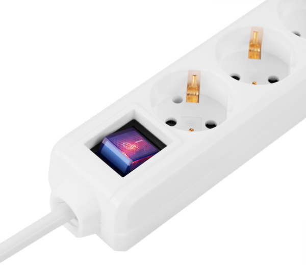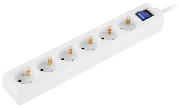 Мережевий подовжувач 2E модель U06ESM3WH із вимикачем призначено для підключення офісної та побутової техніки сумарною потужністю до 3,5 кВт. Має шість євророзеток типу Schuko (F) із заземленням і захисні шторки. Трижильний кабель із перерізом жили 1,5 мм², матеріал провідника – мідь. Білого кольору, довжина кабелю 3 м.