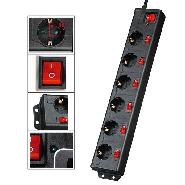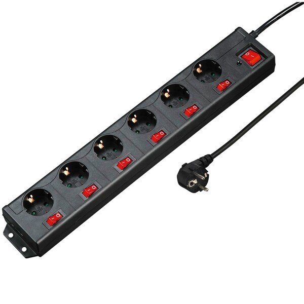 - Мережевий подовжувач Hama 6хSchuko з окремим увімкненням кожної розетки 3G*1.5mm 1.4 m Black (00137259)