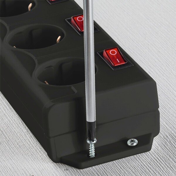 Ідеально, коли всі пристрої, які необхідні, отримують живлення через розетку – непрактично, якщо резервна потужність надходить на пристрої, які не потрібні весь час. Кожну розетку можна вмикати і вимикати окремо на цій колодці розеток – безпечно і економічно.