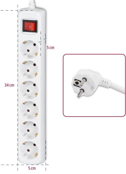 - Мережевий подовжувач Hama Multiple 6XSchuko 3G*1.5мм, 3м, White (00030533)