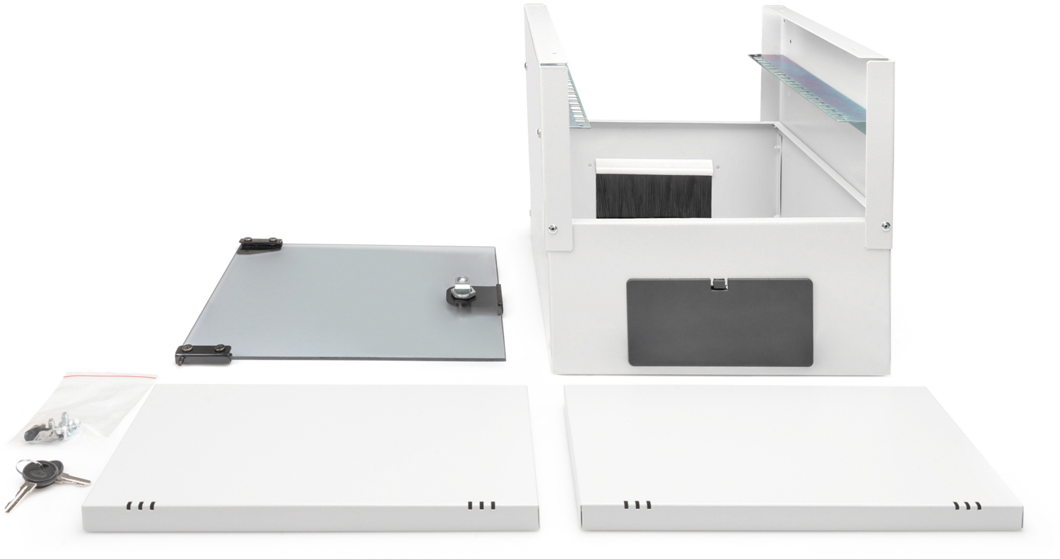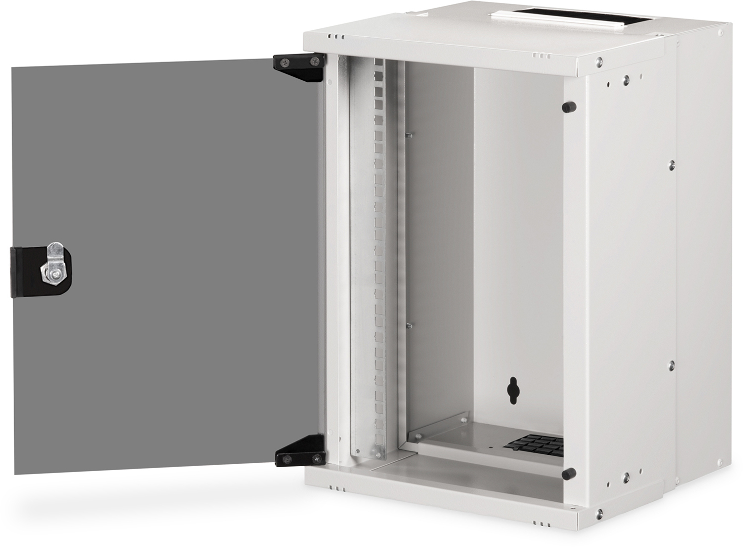 Вдома, в офісі або в обмеженому просторі: за допомогою компактних рішень серії SOHO Pro ви можете встановити своє обладнання де завгодно. Доступні в трьох варіантах висоти (6U, 9U, 12U), настінні шафи оснащені скляними дверима та кабельним вводом у верхній і нижній частині. Всередині встановлена пара оцинкованих профільних рейок, маркованих розбірливими одиницями висоти. Їх можна регулювати по глибині. Кожна шафа - це міцна сталева конструкція, виготовлена з листової сталі товщиною до 1,5 мм. Фарбування здійснюється за допомогою електростатичного порошкового покриття в стандартних кольорах: сірий (RAL 7035) і чорний (RAL 9005). Дверні петлі можуть бути замінені. Шафи постачаються в розібраному вигляді в оптимізованому плоскому пакованні. Завдяки детальній інструкції, що входить до комплекту, збірка виконується всього за декілька кроків.