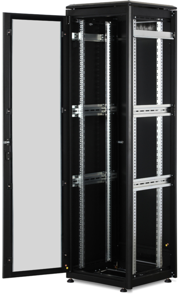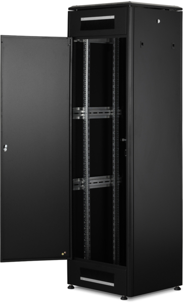 Мережеві шафи серії Unique розроблені та виготовлені для особливо зручного та гнучкого прокладання мережевих кабелів. Продумані оптимізації забезпечують відповідну ринковим вимогам надійність та максимальну гнучкість. Модульне базове шасі, яке можна відкрити за допомогою прикручених глухих панелей 483 мм, забезпечує достатньо місця для кабелів будь-якого типу. Крім того, у задній частині базового шасі розташовані кабельні вводи з щітками. Задні щіткові смуги над і під задніми дверцятами (від 26U) дозволяють використовувати шасі в широкому діапазоні сценаріїв застосування. Просторі вертикальні кабельні канали з пристосуваннями для прокладки кабелів та кришкою, встановлені спереду (від ширини шафи 800 мм), ідеально доповнюють універсальні можливості мережевої шафи. Всередині встановлено дві пари вигнутих та оцинкованих 483-мм профільних рейок, маркованих позначками висоти, які можна читати в обох напрямках. Вони плавно регулюються та з'єднані з додатковими опорами глибини в шафі. Кожна шафа — це міцна сталева конструкція, виготовлена з листової сталі товщиною до 1,5 мм. Фарбування виконується у вигляді електростатичного порошкового покриття у стандартних кольорах сірий (RAL 7035) та чорний (RAL 9005). Модульні замикаючі та знімні бічні панелі та двері покращують доступність. Петлі дверей можна замінити. Крім того, шафи можна повністю розібрати за потреби завдяки знімній конструкції. Залежно від застосування, всі мережеві шафи DIGITUS Unique також можуть використовуватися як серверні шафи, з урахуванням таких факторів, як вага та тепловиділення вбудованих компонентів. Встановлення перфорованих сталевих дверей у таких варіантах забезпечує покращене пасивне охолодження встановлених компонентів. Модель, визначена DIGITUS як серверна шафа, наприклад, доповнена задніми кронштейнами PDU у стандартній конфігурації серії Unique Server-N.