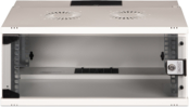 Будь то вдома, в офісі або для розподільних щитів з обмеженим простором: з компактними рішеннями серії SOHO Pro шириною 483 мм (19") ви можете встановити свою мережу де завгодно. Настінна шафа висотою 4U, оснащена скляними дверцятами і кабельним вводом у верхній і нижній частині. Всередині встановлені дві пари оцинкованих профільних рейок 483 мм (19"), з чітким маркуванням висоти. Їх можна регулювати по глибині. Шафа являє собою міцну сталеву конструкцію з листового металу товщиною до 1,5 мм. Фарбування виконано у вигляді електростатичного порошкового покриття в сірому (RAL 7035) кольорі. Дверні петлі можна замінити. Мережеві шафи постачаються в розібраному вигляді в оптимізованій плоскій упаковці. Збірка здійснюється всього за кілька кроків і не представляє ніякої складності завдяки доданій покроковій інструкції.